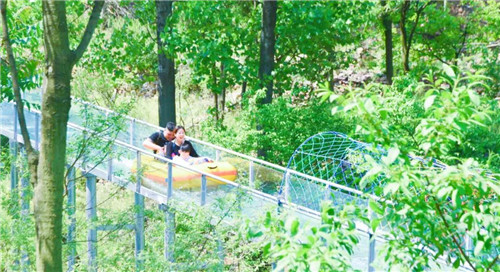位于九女峽的超級滑滑梯,體驗(yàn)最長滑道。穿上特制的迷彩褲,下山速度快慢可自己掌控,在山林中滑行,刺激和放松。