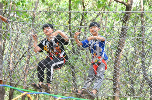 其實(shí)叢林穿越不僅大人們可以玩,四五歲的小孩子也可以玩。對于很多孩子們來說,他們心中埋藏著一顆探險(xiǎn)家的夢,而叢林穿越是孩子們的“世外桃源”。孩子們在叢林間不斷的穿越,在不斷的運(yùn)動(dòng)中體驗(yàn)驚險(xiǎn),再加上全方位的安全保障體系,這樣就可以圓了孩子們“探險(xiǎn)家”的夢想。