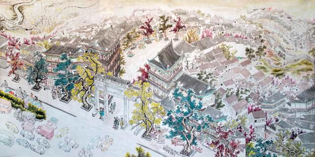 “端午這幾天,街上搞了不少活動(dòng),我準(zhǔn)備在這兒畫點(diǎn)唱戲的,在那兒畫幾個(gè)包粽子的。”梁大保指著圖上的空白處說道。