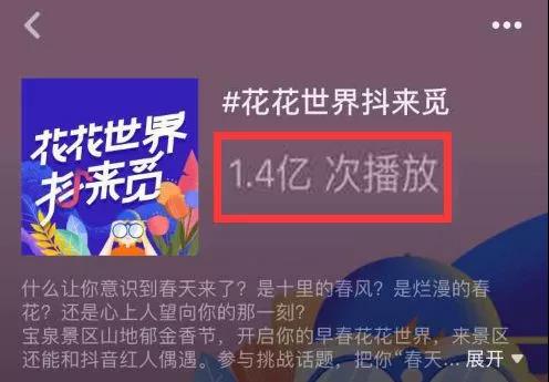 寶泉抖音挑戰(zhàn)賽#花花世界抖來覓,截至目前,觀看量已達1.4億次,熱度持續(xù)上升中。