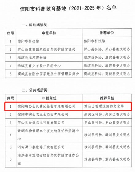 為加強基層科普能力建設,日前,雞公山等37個單位被評為“信陽市科普教育基地”,進一步完善了我市科普教育基地體系,市民和游客又多了一個寓教于樂的好去處。