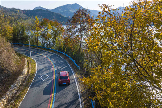 初冬時節(jié),沿著河南省信陽市新縣境內“紅色大別”一號旅游公路依山行進,三彩線在層林盡染的大別山畫卷里描下了點睛之筆。