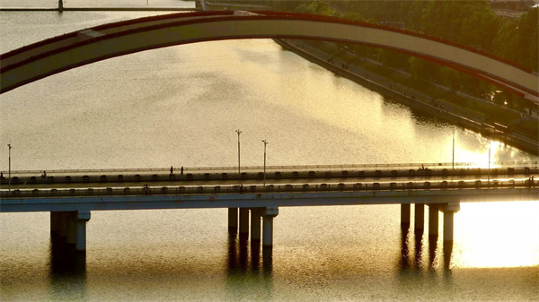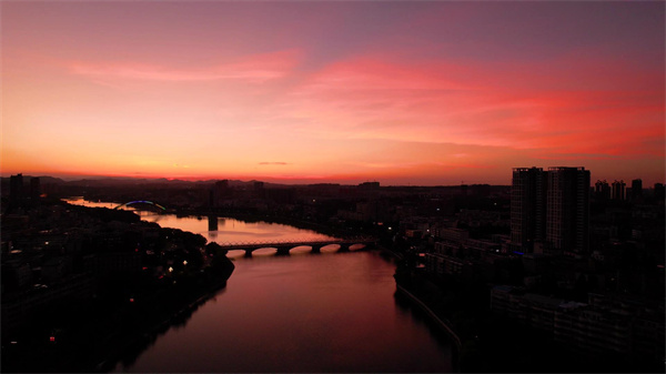 圖為信陽市浉河岸邊,夕陽西下,天空出現(xiàn)絢麗晚霞。 歐陽國威 攝
