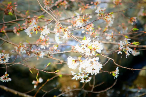 野櫻花多是淡粉色或是白色,干凈素雅,仿佛不沾染一絲纖塵,漫山開遍,落英繽紛,美不勝收,映襯著滿目青山,爛如云霞,就連空氣中都彌漫著清新的花香。