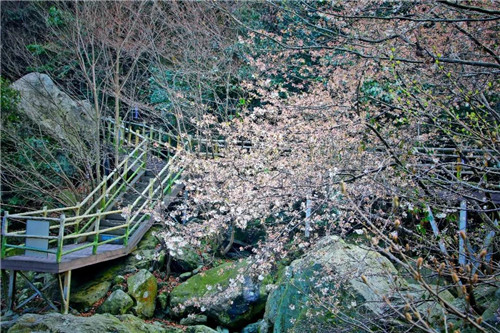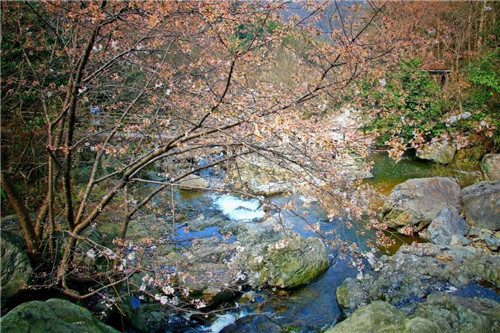 龍津溪地山谷里,漫山遍野鮮花開,野山櫻、茱萸、桃花,仿佛藏下了整個春天。