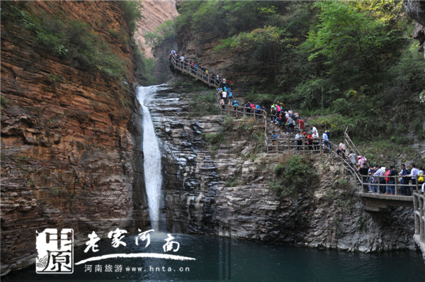 金秋十月,山明水秀,碩果累累,紅葉初染,是太行大峽谷最具魅力的時節(jié)之一。在王相巖景區(qū),山的險峻與雄偉給游客留下深刻印象,人們拾級登山,體驗登高臨遠的樂趣。桃花谷景觀奇特,奇峰突兀,一條蜿蜒曲折的桃花溪水貫穿于整個峽谷,溪水兩岸草藤垂掛,雜木叢林莽莽無際,隨山風涌動的綠潮似海水漫卷。構成了桃花谷山靈水秀的峽谷水韻。