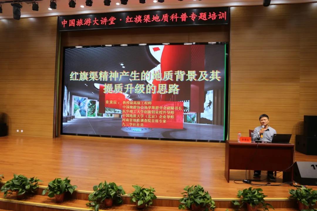 為推動(dòng)紅色景區(qū)提質(zhì)升級(jí),助力紅色旅游景區(qū)的高質(zhì)量發(fā)展,進(jìn)一步把紅色資源利用好、紅色傳統(tǒng)發(fā)揚(yáng)好、紅色基因傳承好。5月19日,正值中國(guó)旅游日,中國(guó)旅游大講堂紅旗渠地質(zhì)科普專題培訓(xùn)在紅旗渠精神營(yíng)地舉行。中國(guó)旅游協(xié)會(huì)副秘書(shū)長(zhǎng)佘小殷,河南省旅游協(xié)會(huì)秘書(shū)長(zhǎng)滑蕾,地學(xué)旅游分會(huì)常務(wù)副會(huì)長(zhǎng)、中國(guó)地質(zhì)大學(xué)(北京)地質(zhì)旅游研究所所長(zhǎng)許濤以及全市紅色景區(qū)、旅行社、培訓(xùn)機(jī)構(gòu)代表200余人參加本次培訓(xùn)。