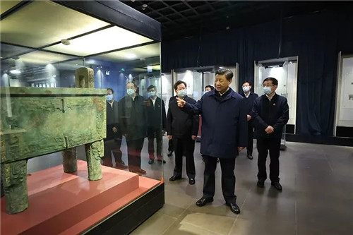 10月28日,在安陽殷墟博物館,習(xí)近平總書記仔細(xì)觀摩青銅器、玉器、甲骨文等出土文物。他感慨地說,“殷墟我向往已久,這次來是想更深地學(xué)習(xí)理解中華文明,古為今用,為更好建設(shè)中華民族現(xiàn)代文明提供借鑒。”他強(qiáng)調(diào),中華優(yōu)秀傳統(tǒng)文化是我們黨創(chuàng)新理論的“根”,我們推進(jìn)馬克思主義中國化時(shí)代化的根本途徑是“兩個(gè)結(jié)合”。我們要堅(jiān)定文化自信,增強(qiáng)做中國人的自信心和自豪感。