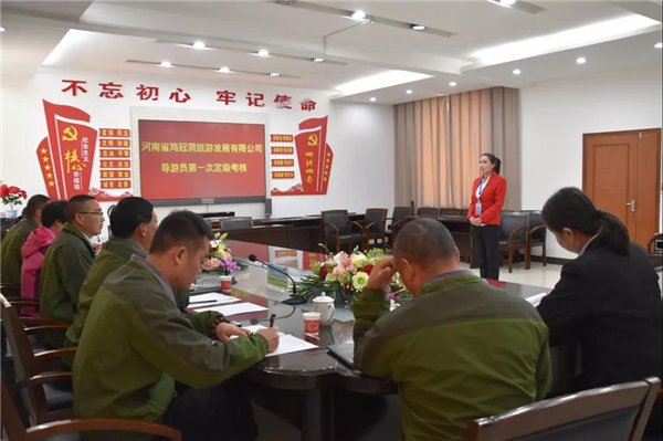 此次景區(qū)導(dǎo)游員考核,是河南省雞冠洞旅游發(fā)展有限公司成立后的第一次定級考核,考核評定成績與工資直接掛鉤,并把愛崗敬業(yè)的鉆研精神貫穿在各項日常工作中,打造出一支形象好、氣質(zhì)佳、能力強、才藝廣、業(yè)務(wù)精、素質(zhì)高的雞冠洞導(dǎo)游隊伍。