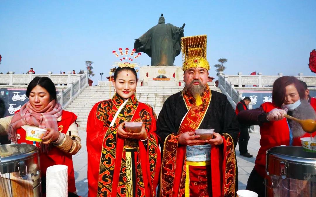臘八節(jié)一大早,“漢高祖劉邦”現(xiàn)身在國家5A級景區(qū)芒碭山旅游區(qū),親自為游客及小鎮(zhèn)百姓施粥,數(shù)千名游客及百姓分得芒碭山芒山寺僧眾特意熬了一整夜的臘八粥。除此之外,芒碭山還特意為游客呈現(xiàn)了河南唯一的漢儺舞演出,用中國最純正傳統(tǒng)的祈福方式,為游客開啟2018吉祥年。