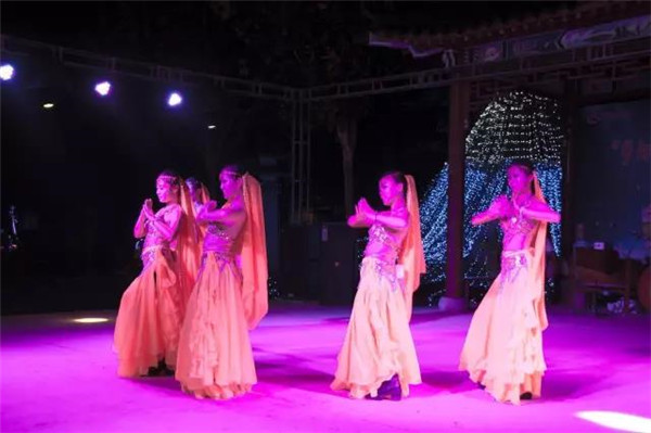 若只有燈景,或許有些太靜了,為此,園區(qū)專門為游客準備了節(jié)目,有美艷動人的舞蹈。