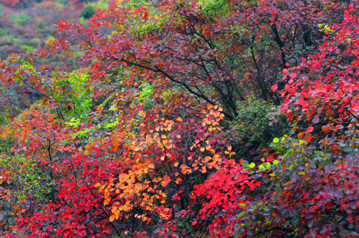 金秋的太行大峽谷,紅葉似火、秋菊綻放、色彩斑斕,樹樹皆秋色,山山唯落暉,寂靜的山林深處被風(fēng)雨肆意吹打著的枝葉,漸漸開始綻放著屬于自己的燦爛時(shí)光!太行山上似火的紅葉熊熊燃燒,點(diǎn)亮生命的余暉激情......
