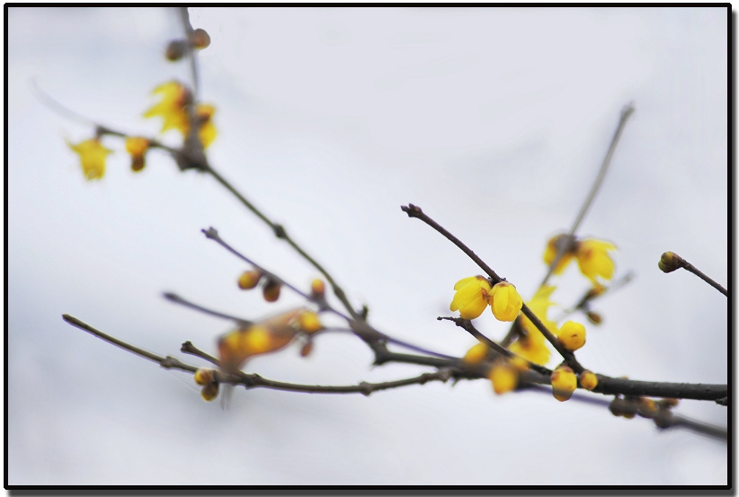 推開古樸典雅的圓形鐵門,一股新鮮的清香撲鼻而來(lái),似水仙的清甜鮮雅,越往里面走,香氣越濃郁,一時(shí)覺得整個(gè)梅苑氤氳在神秘的暗香中。迎著寒風(fēng)嬌羞開放的是黃色的臘梅。疏枝橫斜的珊瑚枝在月色下挺一身瘦骨,柔美的小花用淡定的微笑,迎接著我們探尋的目光。
