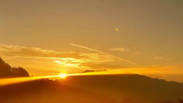 紅日破曉,噴薄而出,光芒萬丈的金頂日出。