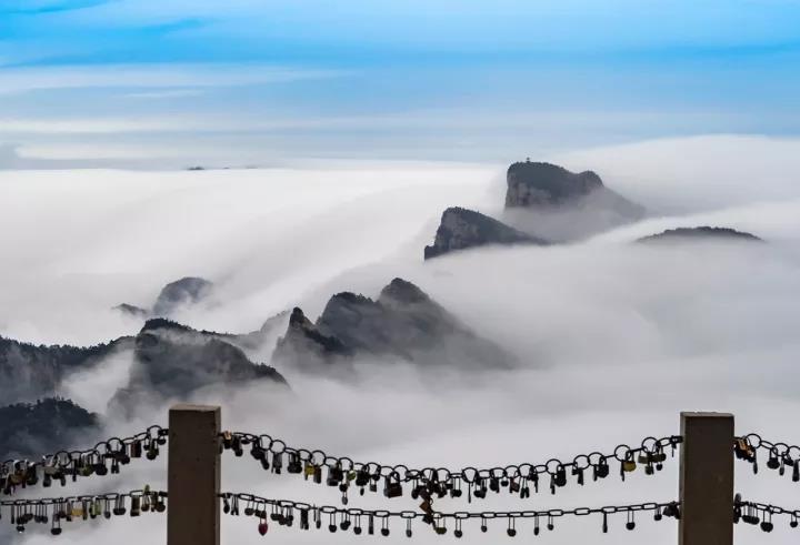 傳說白云峰就是當年白蛇修煉金身的地方,山頂有同心鎖,游客可將自己的鎖掛在“離天最近的地方”。