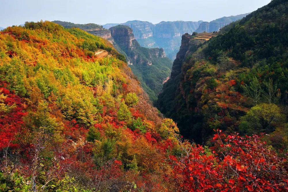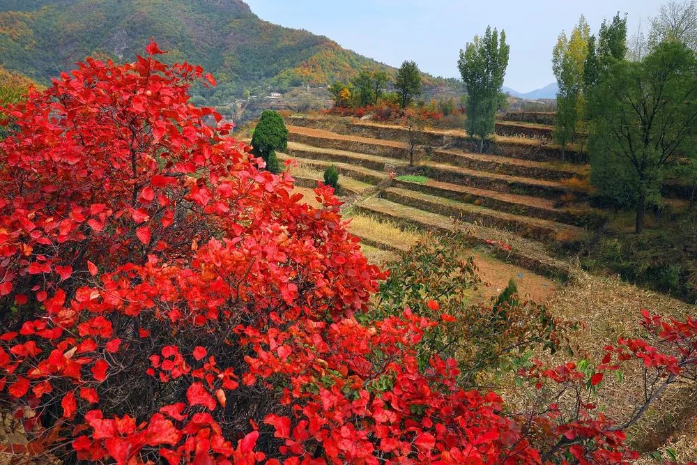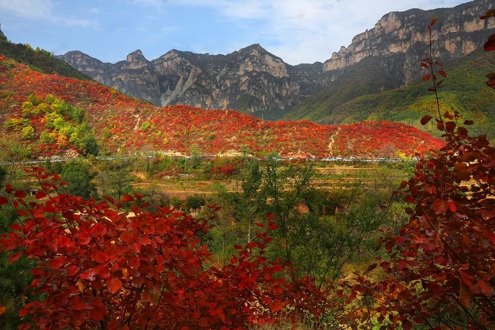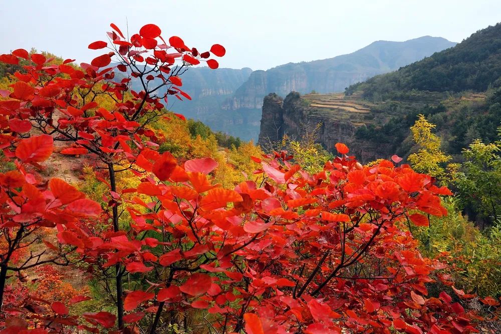 金秋時(shí)節(jié),林州太行大峽谷迎來了它一年中最絢麗多彩的季節(jié),紅葉漫山,果實(shí)累累,色彩斑斕,美景無限。每當(dāng)?shù)搅饲锛,如火如荼的黃櫨像朵朵盛開的紅花,嬌艷嫵媚,紅紅火火,把大山一下子裝點(diǎn)得熱烈而奔放,整個(gè)峽谷就仿佛“燃燒”了起來,“點(diǎn)燃”了整個(gè)山體,散發(fā)出震撼人心的美麗與壯觀。