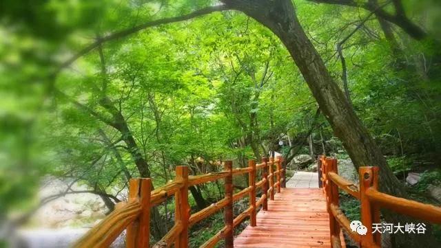 天河谷內(nèi),枝繁葉茂,綠油油的枝葉形成曲徑通幽、一望無盡的拱門,構(gòu)筑成了一幅具有詩情畫意的愛情隧道!順河谷而上,穿行在愛情隧道內(nèi),不僅能享受到漫山遍野的花香,和戀愛時節(jié)的滋味,而且,在大片的幽靜林地上,還能聽到叮咚作響的溪流、清脆悅耳的鳥鳴!困了,閑坐在長椅之上、捧一卷書,或干脆躺在草坪上,閉目呼吸那無塵、多氧的清新空氣,十分愜意!