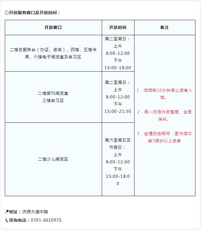 濟源圖書館將于2021年9月8日有序恢復(fù)開放,實時在館人數(shù)達到1000人后,將采取“出一進一”措施限流,各位讀者須服從管理,按照貼好的防疫“安全坐席”就座,不搶座不占座,不得超限席加座。