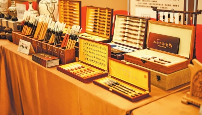 河南省文化和旅游大集上展出的劉騰龍毛筆。河南省文化和旅游廳供圖