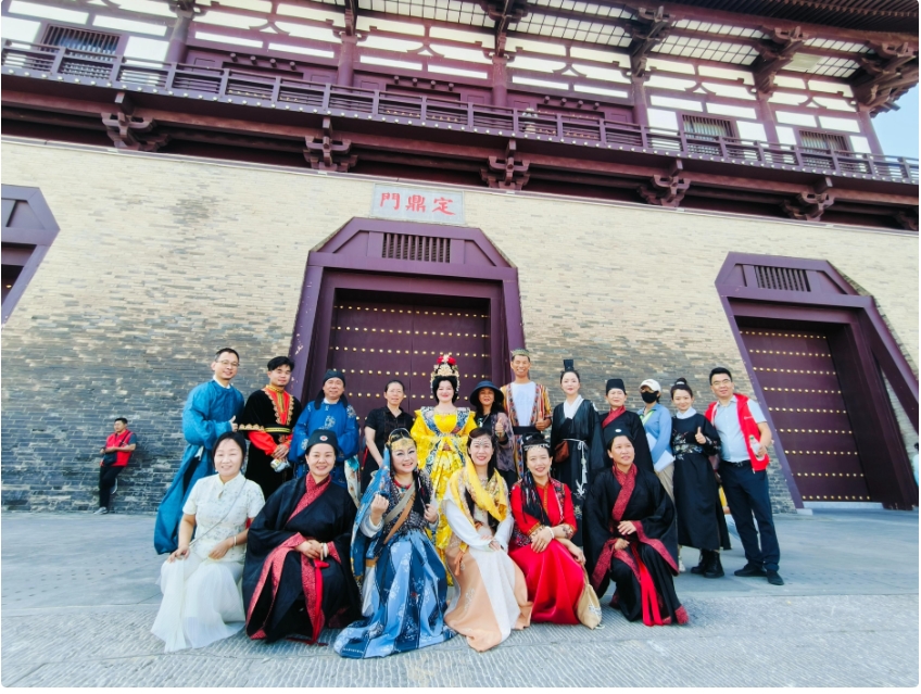 “開定鼎門,迎使臣入洛陽城!”9月6日上午10時許,隨著“天后武則天”的一聲令下,隋唐洛陽城正南門——厚重的紅漆定鼎門被徐徐打開,130余位來自廣東佛山南海區(qū)港、澳、臺的留學(xué)生們穿越回了唐朝,推開定鼎門,來到天街,一眼看到了古都洛陽的千年歷史塵煙……