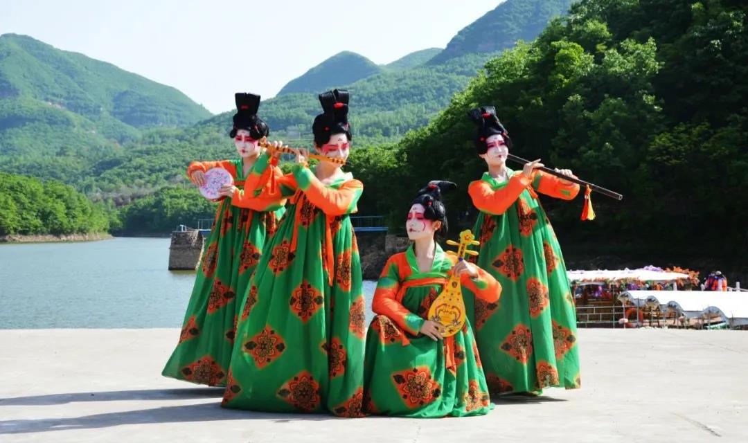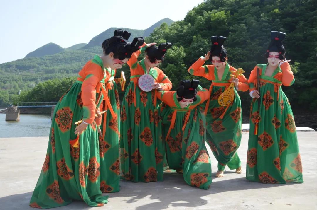 “唐宮夜宴”的小姐姐們穿越到了美麗的情侶湖畔;敦煌的“飛天女神”也空降游九峰山。