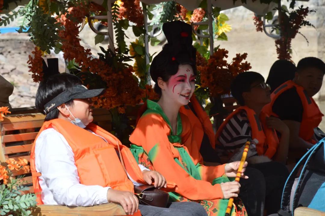 游客們在欣賞大好風(fēng)光的同時,不僅能欣賞到精彩演繹,還能與唐宮小姐姐同乘一條花船,近距離合影......