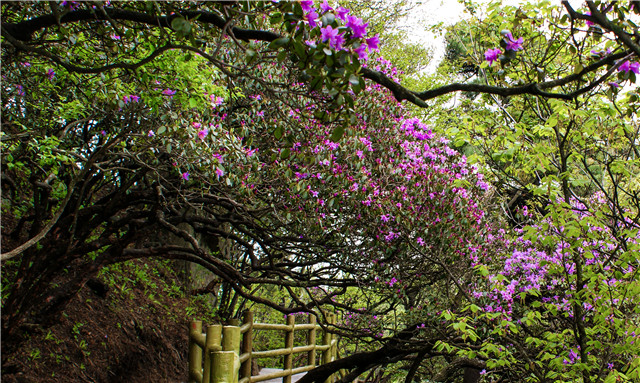 堯山的四季都有不同景象,春天的紫荊花嬌艷欲滴;金秋的紅葉燦若彩霞;冬季的林海雪原更是一個童話世界,而夏季的堯山,自然就是欣賞杜鵑花爭奇斗艷。