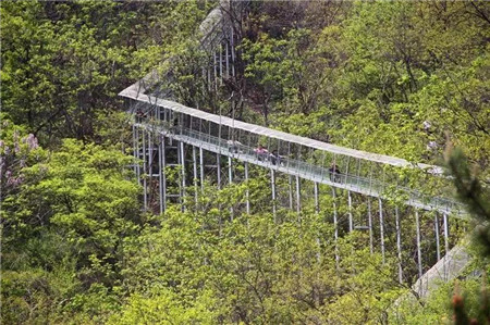 體力不支的朋友們可以選擇乘坐龍山索道,它是轎頂山第一條客運索道,索道分設(shè)上、下站。上站設(shè)在陡然高聳、云歇霧宿的龍山山頂,下站位于蒼翠蔥蘢的幽谷棧道傍。