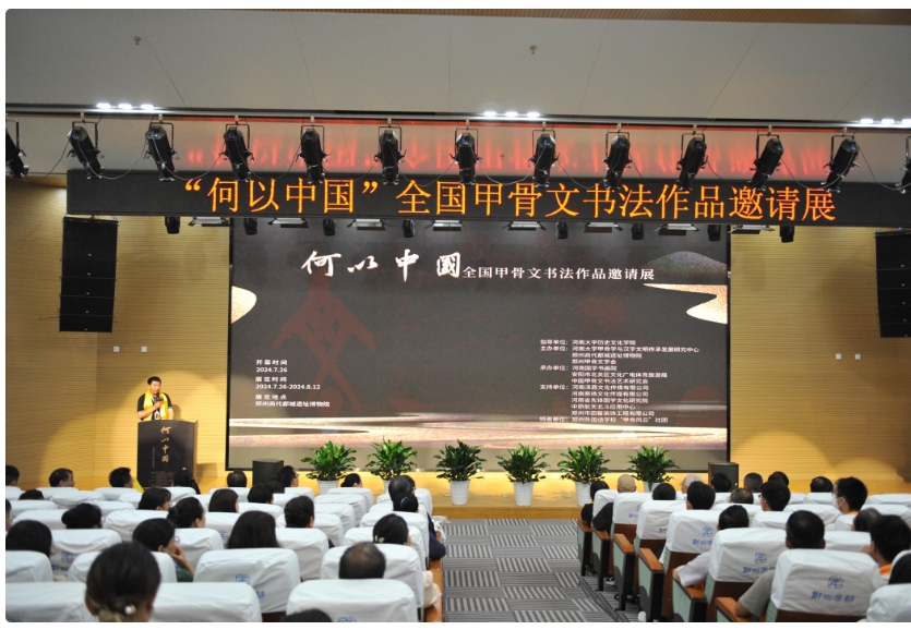 甲骨文是迄今為止中國發(fā)現(xiàn)的年代最早的成熟文字系統(tǒng),是中華優(yōu)秀傳統(tǒng)文化的根脈。曾經(jīng)的先人們將文字刻入甲骨,如今的書法家們用筆墨紙硯將甲骨文再現(xiàn)。2024年7月26日,“何以中國”全國甲骨文書法作品邀請展在鄭州商代都城遺址博物院開幕。