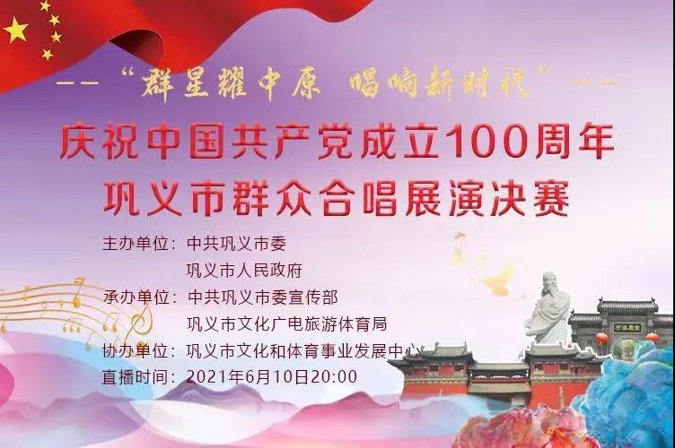 為隆重慶祝中國共產(chǎn)黨成立100周年,提振全市干部群眾昂揚向上的精神狀態(tài),全面展示全市人民凝心聚力建設現(xiàn)代化美麗新鞏義、建設黃河流域鮮明特征的文旅強市的新氣象、新作為,鞏義市將于6月10日舉辦“群星耀中原 唱響新時代”—慶祝中國共產(chǎn)黨成立100周年鞏義市群眾合唱展演決賽。