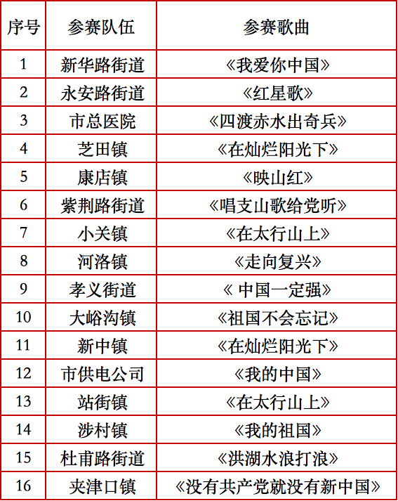 5月25日“群星耀中原 唱響新時代”—慶祝中國共產(chǎn)黨成立100周年鞏義市群眾合唱展演預賽評選出的16支隊伍。