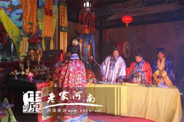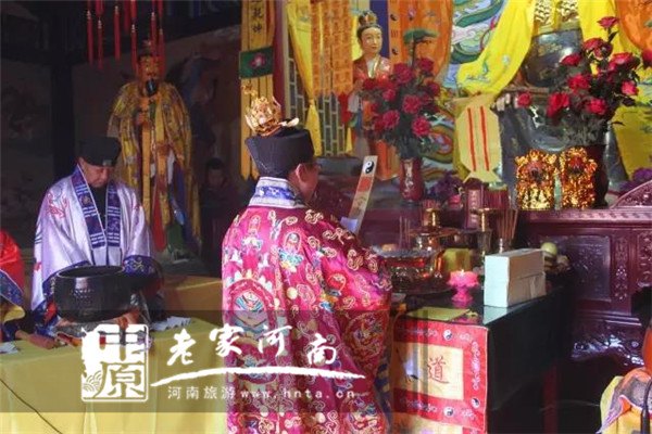 此次輝縣轎頂山舉行的祈福消災(zāi)大型法會,由天云觀張道長主法。旨在祈求國泰民安,風(fēng)調(diào)雨順,世界和平。而意儀式中的齋醮、章表、疏文更是傳統(tǒng)道教中的演道的一種形式,現(xiàn)存的齋醮有開壇、奏請、灑凈、符水、誦經(jīng)、存思等,充分為游客再現(xiàn)了傳統(tǒng)道教的宗教文化、儀式文化。