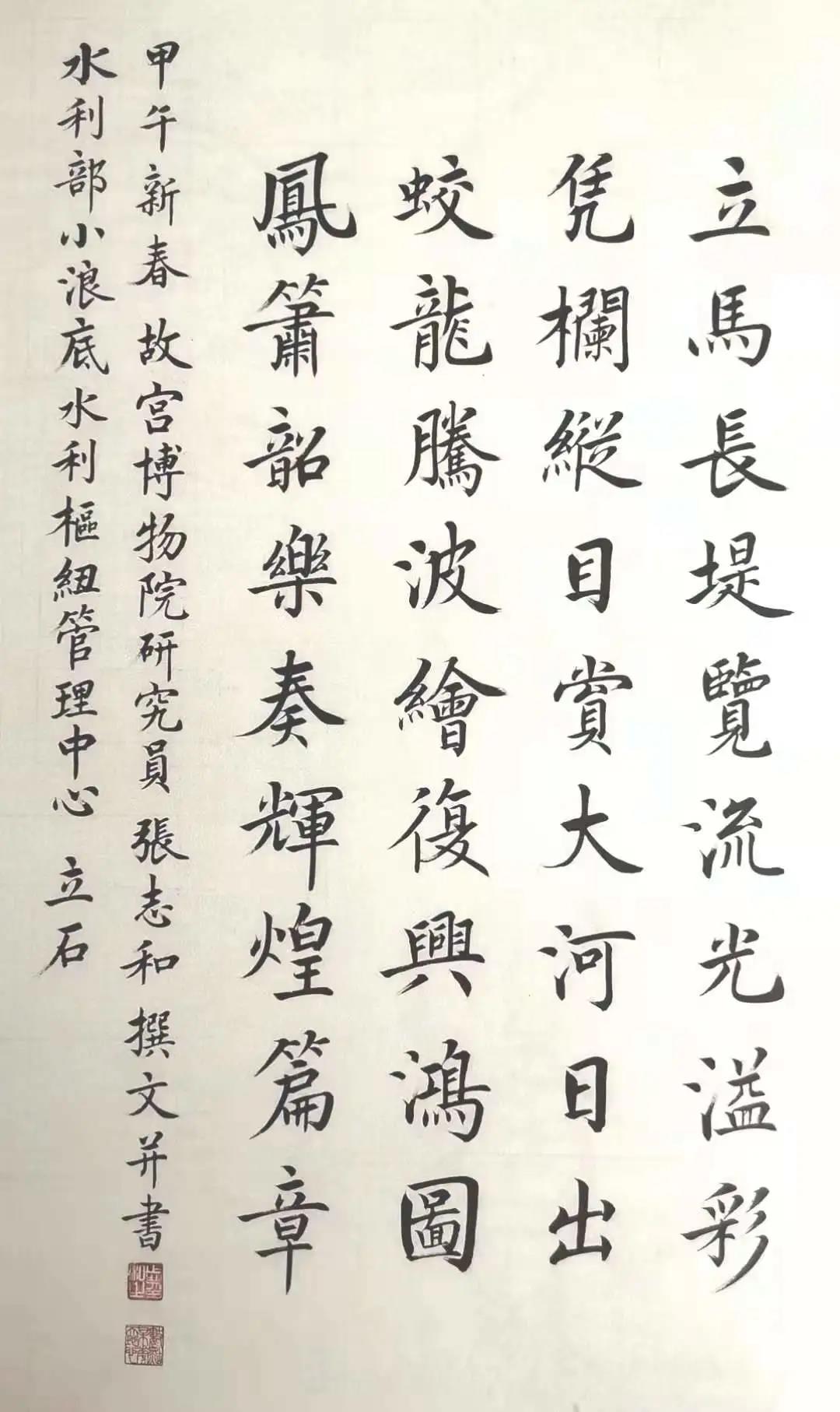 2009年所創(chuàng)作并書寫的《中華頌》是進入國家最高殿堂——人民大會堂金色大廳的唯一幅書法巨作,該作品長18米。高3.72米!豆饷魅請蟆、《新華文摘》等均作過專門報道,并由中國社會科學出版社出版為《中華頌》精裝書法作品集。
