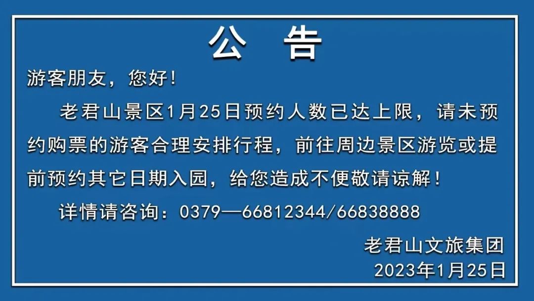為做好春節(jié)假期接待服務(wù)工作,老君山景區(qū)實(shí)行“預(yù)約,分時(shí),錯(cuò)峰,限量”規(guī)范有序的管理,安全順暢的交通,認(rèn)真熱情的服務(wù),更好的為各位游客的假期之旅提供保障。