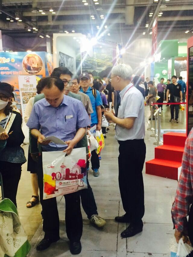 2015年6月5日太行大峽谷景區(qū)營銷團隊一行應韓國HANATOUR旅游公司邀請赴韓國參加哈拿多樂國際旅游博覽會。今年是第九屆哈拿多樂國際旅游博覽會,全球60個國家、560個景區(qū)、87000多人受邀參加此次博覽會,中國展區(qū)共設置103個展臺,預計參加人數(shù)10萬多人。
