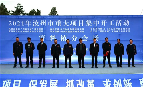 于園飛對本次集中開工的九峰山景區(qū)“石意生活”民宿項目、河南山水薈婕農(nóng)牧科技有限公司年出欄12萬頭商品豬建設(shè)項目、華陽桑樹坪有限公司年出欄12.5萬頭良種豬基地建設(shè)項目、汝州市寄料鎮(zhèn)呂莊村柿樹灣旅游開發(fā)項目、汝州市寄料鎮(zhèn)呂莊村明月山居生態(tài)觀光旅游項目、河南聚友農(nóng)牧科技有限公司年出欄五萬頭商品豬養(yǎng)殖場建設(shè)項目分別做簡要介紹。
