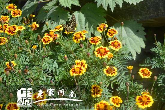 時光步入10月底的深秋,然而在新鄉(xiāng)南太行八里溝園區(qū)的山道旁、坡嶺上,一束束,一簇簇山花迎著清風(fēng)驕傲的開放著。這是開在九蓮山景區(qū)山道旁的野花,還有蝴蝶飛來。