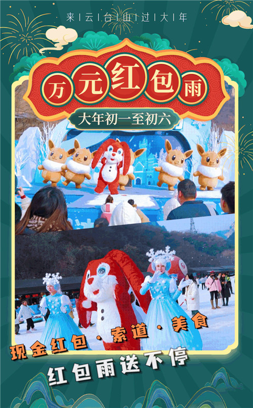 📣辭舊歲,迎新春,正月初一至初六,每天五場(chǎng),萬元紅包雨連降6天,現(xiàn)金紅包!索道體驗(yàn)票!小吃美食等通通免費(fèi)送!