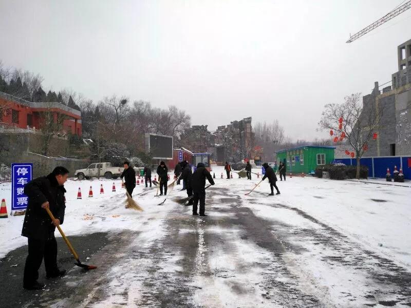 風(fēng)雪忽至,景區(qū)干部職工更是不畏風(fēng)雪,不顧嚴(yán)寒,奮力清除景區(qū)交通道路、游覽步道等主干路面的積雪,只為給廣大游客朋友提供最優(yōu)質(zhì)的服務(wù)和最溫情的守護(hù)。