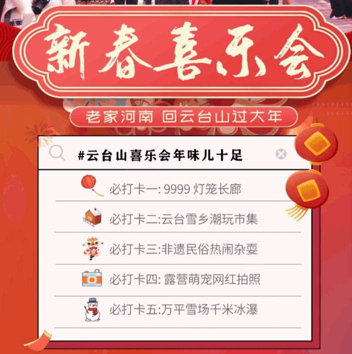 云臺山新春喜樂會,“云臺雪鄉(xiāng)、網紅露營、潮玩市集”,花樣繁多的體驗項目為快樂增值,快喊上朋友們一起來拍跨年大片吧!