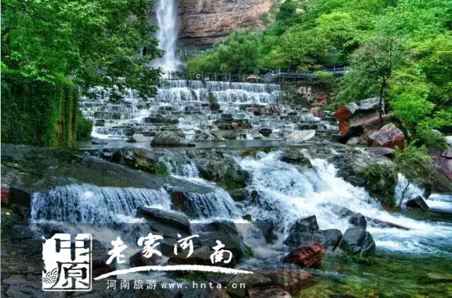 雨后的南太行水景,山泉水漲,秀比江南。瀑布自高聳的巖石上噴射下來(lái),好像無(wú)數(shù)顆亮晶晶的珍珠;瀑布在半山腰上灑落著,飛濺著,又似蒙蒙白霧。潭水清可見底,游魚細(xì)石,一一可見。吊橋,棧道,臨水而行,一路聽泉水叮咚。
