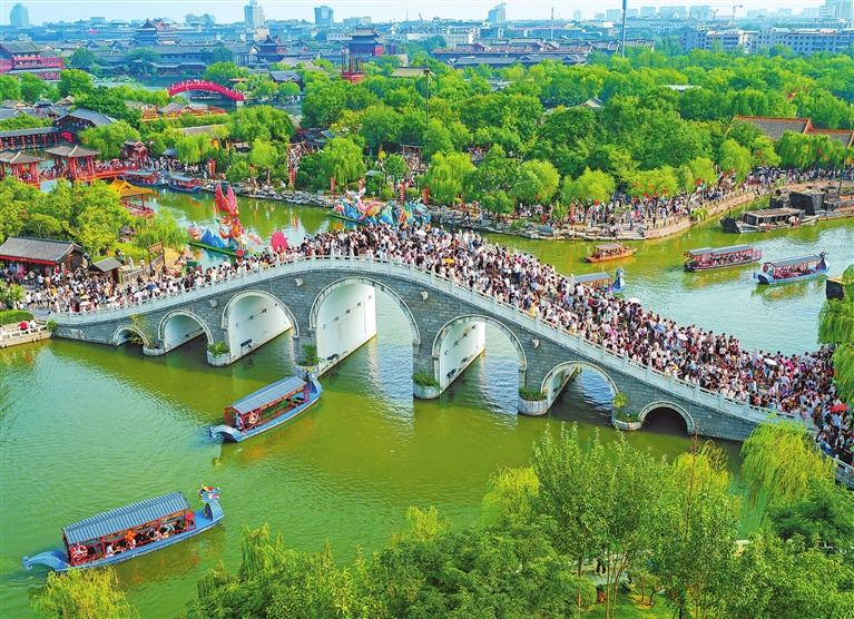 清明上河園已成為不少游客來開封游玩的打卡地。 劉永海 攝
