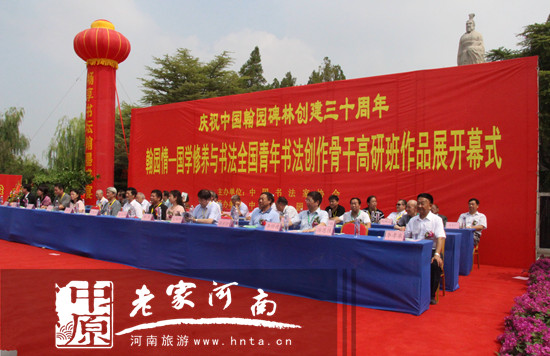 舉辦由中國書法家協(xié)會(huì)主辦的翰園情——國學(xué)修養(yǎng)與書法全國青年書法創(chuàng)作骨干高研班作品展開幕儀式,旨在通過文化盛宴,匯聚八方賓朋,翰園碑林的成長(zhǎng)與發(fā)展無時(shí)不受到社會(huì)各界有識(shí)之士的廣泛關(guān)注,在獲悉翰園碑林舉辦創(chuàng)建三十周年翰園情——國學(xué)修養(yǎng)與書法全國青年書法創(chuàng)作骨干高研班作品展的消息后,中國文聯(lián)黨組書記趙實(shí)、全國政協(xié)教科文衛(wèi)體委員會(huì)副主任、河南省政協(xié)原主席王全書、中石化高級(jí)副總裁牟書令、國家商標(biāo)局原局長(zhǎng)李建昌、韓國前總統(tǒng)金泳三、前總理李壽成、日本前首相海部俊樹、新加坡前總統(tǒng)納丹、日本書法雜志理事長(zhǎng)黑子敏夫及海內(nèi)外眾多書法組織、友好單位和個(gè)人紛紛通過電話、題詞、信函、電子郵件等方式表示祝賀。