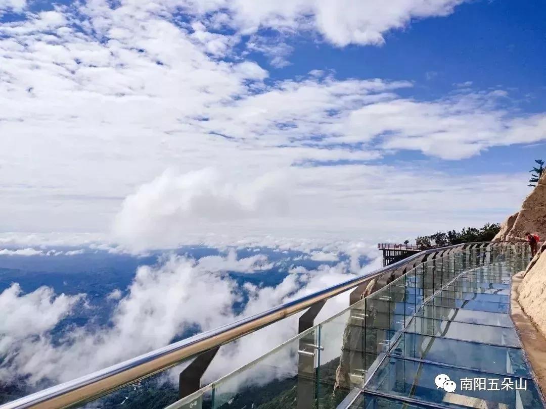 帶著對金頂?shù)木囱龊土魬,我們下山來到高山餐廳,我?guī)闳ンw驗全景式環(huán)山玻璃棧道和高山觀景臺。這里海拔1500米,經(jīng)過一段木棧道和臺階,直達高山觀景臺和建在懸崖峭壁間的玻璃棧道。