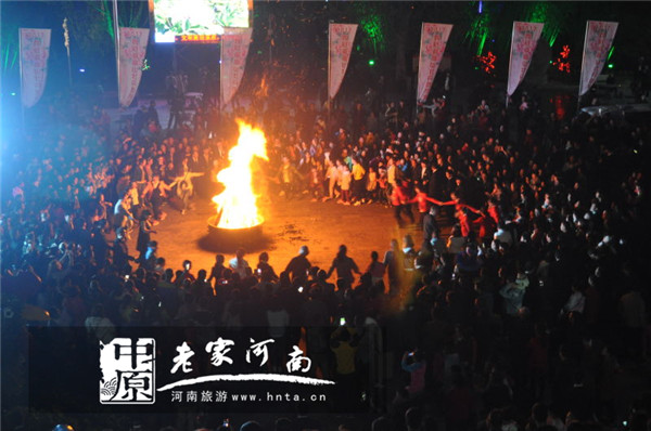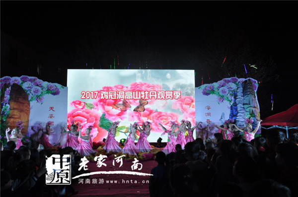 晚上6點鐘,在“千人宴”的活動現(xiàn)場,景區(qū)管理處處長任小敏宣布“雞冠洞高山牡丹觀賞季暨夜游雞冠洞正式啟動。邀請的嘉賓朋友陸續(xù)進入在“千人宴”的活動現(xiàn)場,欒川山水豆腐、樹葉蒸菜等欒川的特色美食紛紛上桌,為遠道而來的客人們奉上醇香的美味,招待遠道而來的客人們。大家邊品美食邊觀看演出:吃得津津有味,贊不絕口、表演精彩無限、篝火激情四溢!有吃、有玩、又跳、又嗨······雞冠洞成了不夜城!