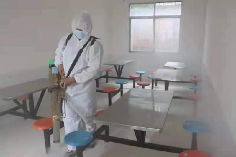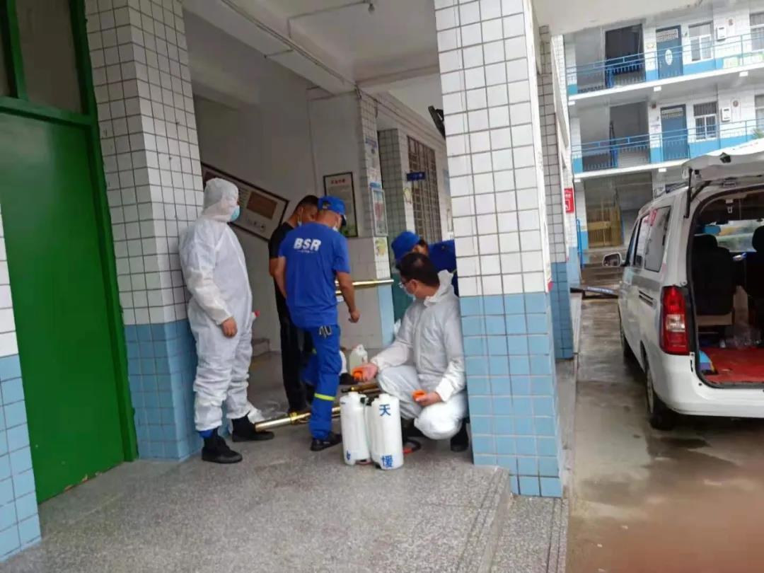 隨后,救援隊(duì)成員合理分工,規(guī)劃好消殺路線,穿戴好防護(hù)服,背上噴霧器,扛起噴槍,駕駛著救援車,在學(xué)校員工的指引下,穿梭在校園每一個(gè)角落,對教室、走道、辦公室、食堂、衛(wèi)生間、操場以及室內(nèi)外公共場所,進(jìn)行了全方位無死角的全面消殺。