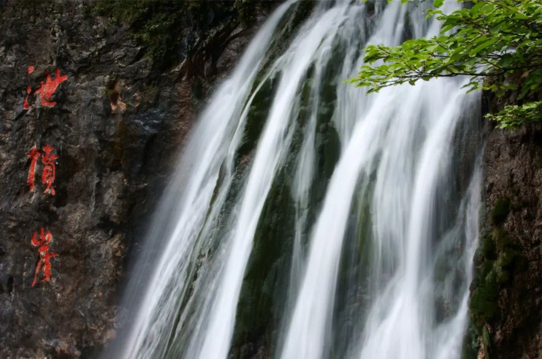 這條瀑布高40余米,水流分為兩級(jí),上半部分瀑泄而下,像抻開的白綾,“白綾”下面是深達(dá)3米的革面潭,像舞動(dòng)的銀練。