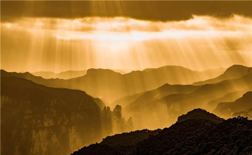 早晨,天邊剛剛泛紅,云臺山就被自己美醒,朦朧的山還頗有睡意,隨著朝陽的萬丈光芒,瞬間精神了。