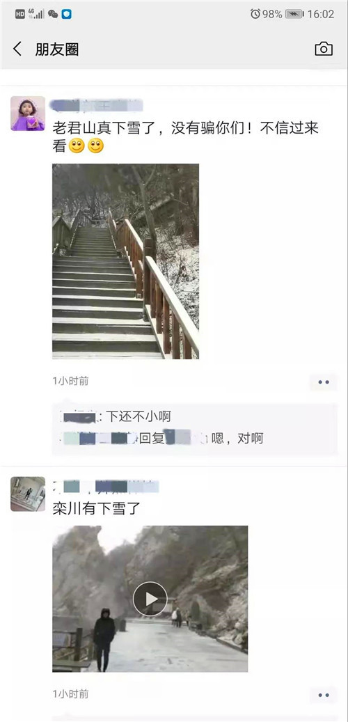2019年的一場雪,來得如此突然,進(jìn)山的游客都來不及躲閃,興奮地奔跑在雪中,這該是有多好的運(yùn)氣,能碰到老君山今年的初雪呢!