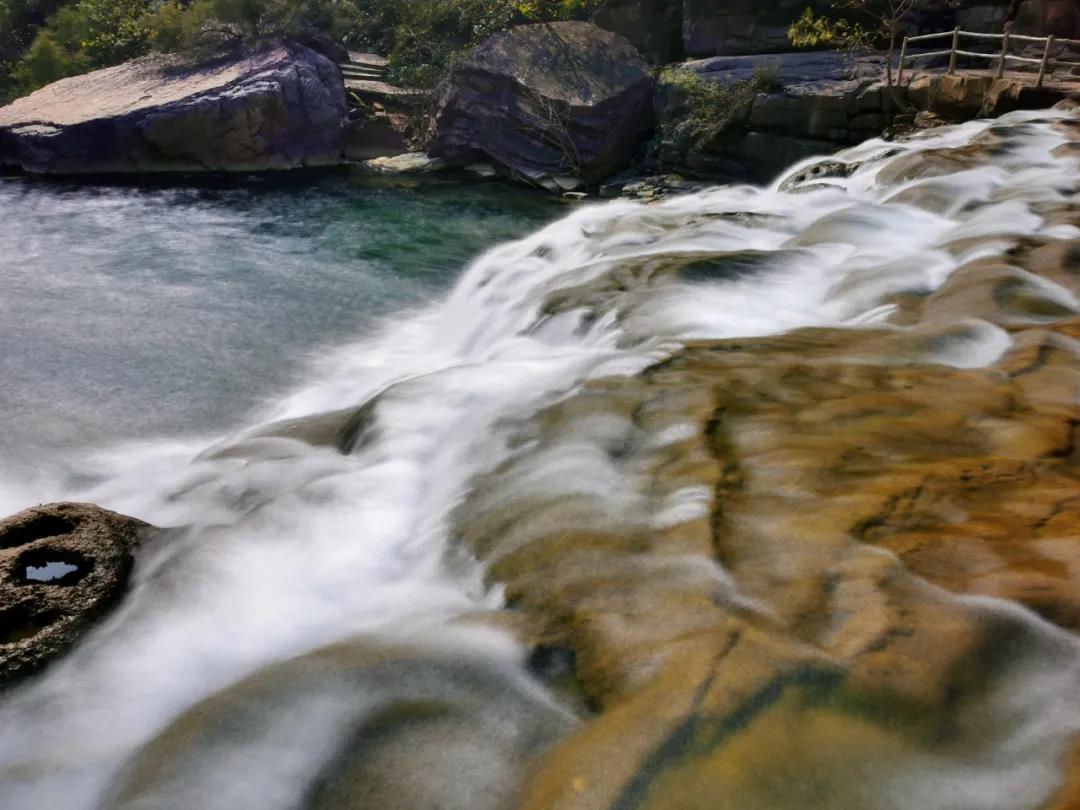寶泉以水聞名,景區(qū)內(nèi)溪瀑成群,素有“中原小九寨”之稱。這里的峽谷很深,但也因?yàn)檫@樣,這里沒(méi)有汽車的轟鳴,只有潺潺的水聲,每一秒都能讓人的心安靜下來(lái)。